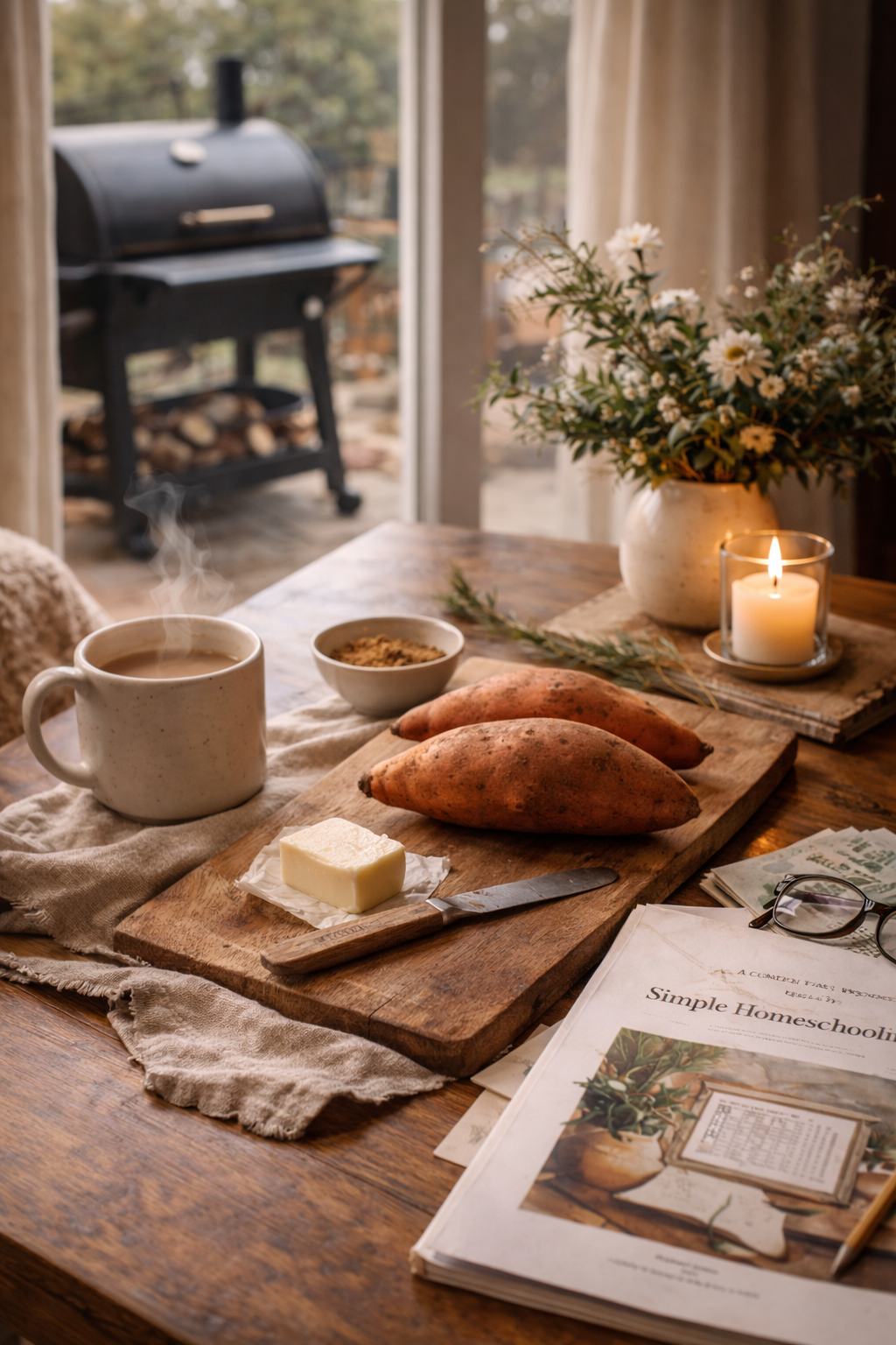 One exciting bit of Christmas cheer around here: I received a new grill/smoker! Scott and I have been spending some time together learning how to use it, and I already know I’m going to have far too much fun experimenting with all the new recipes this opens up. I’m especially excited to try smoked sweet potatoes. Doesn’t that sound wonderful? A warm, smoky sweet potato with a little butter and a drizzle of maple syrup — simple, cozy, and perfect.